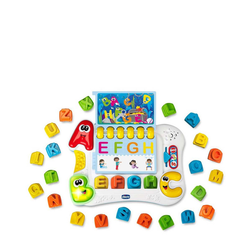 L'alphabet en mouvement de Chicco est un jeu éducatif, électronique et parlant qui apprend aux enfants les lettres de l'alphabet, leur prononciation et comment les reproduire en utilisant leur propre corps. Ce jeu est développé pour répondre aux méthodes d'enseignement Montessori :