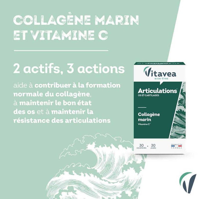 Vitavea articulation Collagène marin associe du collagène à de la vitamine C.