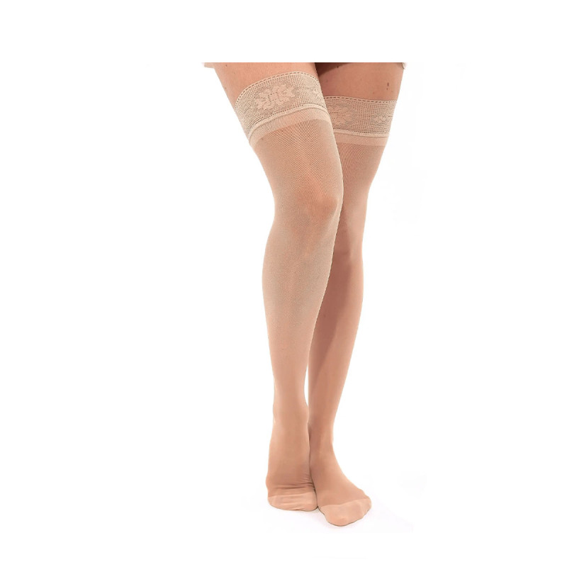 Gardez une longueur d'avance sur les tendances avec notre nouvelle sélection.Bas de contention Lycra avec compression graduée qui exerce un micro massage Niveau de pression : Cuisse 7-9mmHg / Mollet...