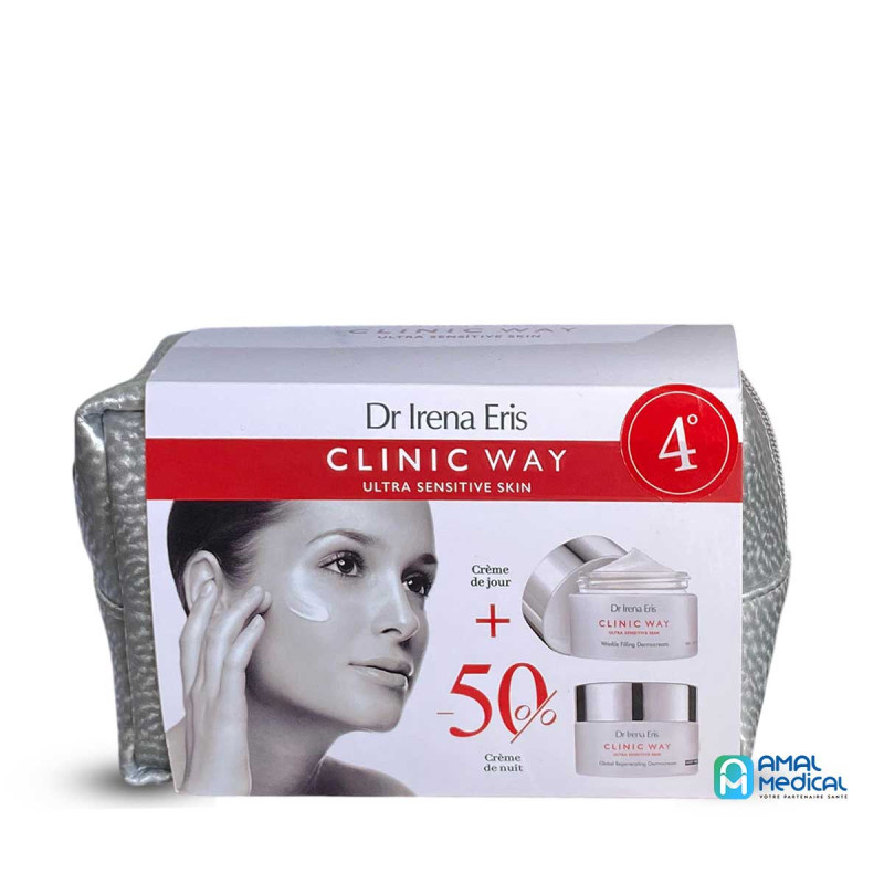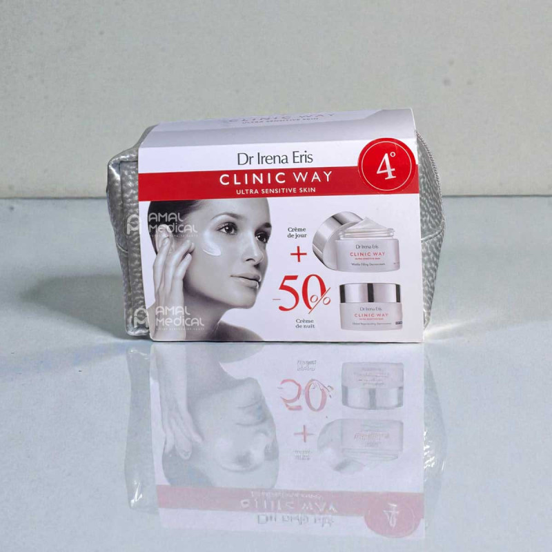 Le Coffret Clinic Way Programme Anti-Âge 4° est idéal pour combattre les rides d'élasticité dès 60 ans. Ce duo jour/nuit régénère, relipide et lisse la peau, améliorant fermeté et souplesse pour un teint visiblement rajeuni et éclatant.
