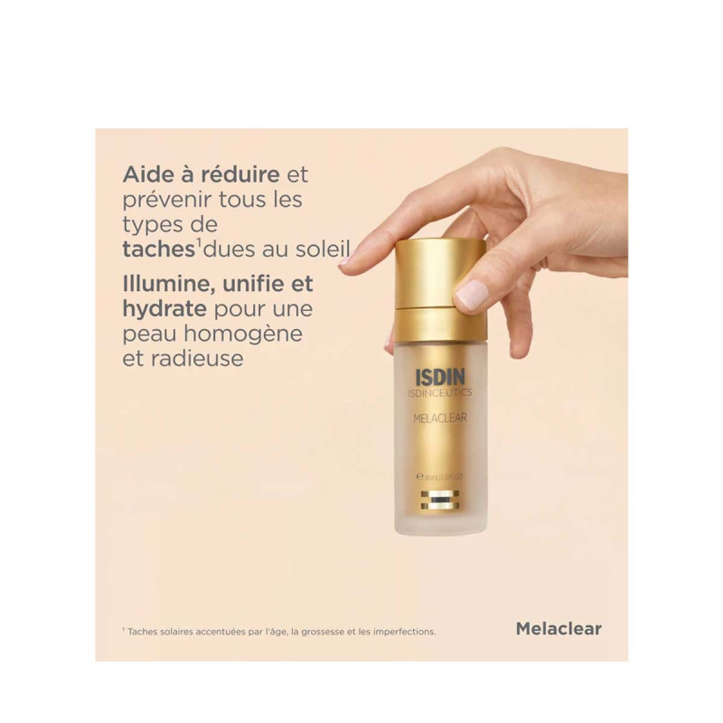 Isdin Isdinceutics Melaclear Sérum Correcteur réduit l'apparence des taches pour un teint uniforme et lumineux.