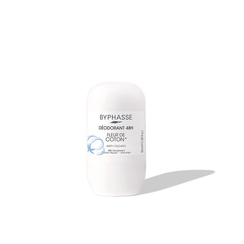 Le déodorant 48H BYPHASSE au fleur de coton et à action anti-transpirante est une véritable bouffée d'air frais. Son délicat parfum floral vous assure une sensation de fraîcheur longue durée. Ce fameux roll-on, vous offre une peau protégée et parfumée d’un délicat parfum de fleurs fraîches.