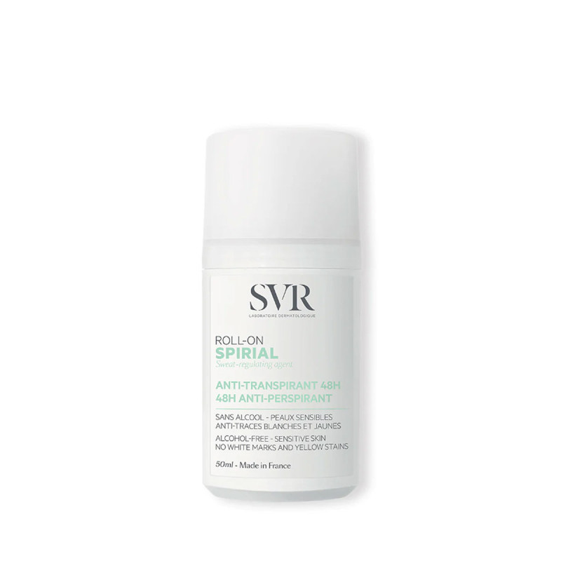 SVR Spirial est un déodorant roll-on anti-transpirant efficace pendant 48 heures. Ce roll-on prévient la formation d'odeurs au niveau des aisselles, il a une action capable de lutter contre les transpirations normales ou excessives.