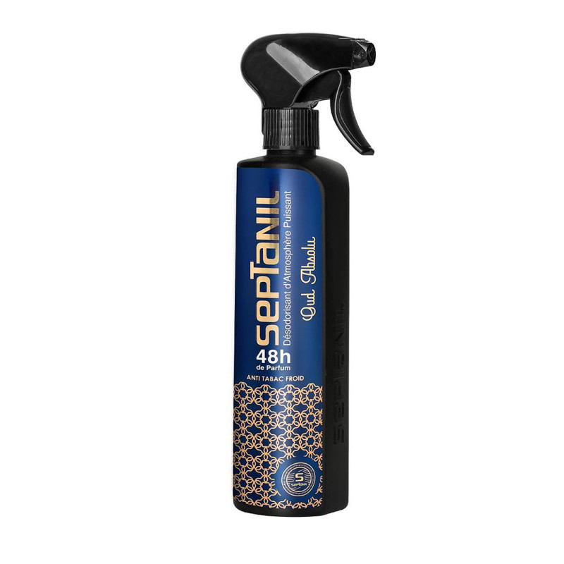 Le désodorisant SEPTANIL Oud Sensuality neutralise instantanément les mauvaises odeurs et diffuse une fragrance boisée, chaude et élégante. Une touche de luxe oriental pour sublimer vos espaces et éveiller vos sens...