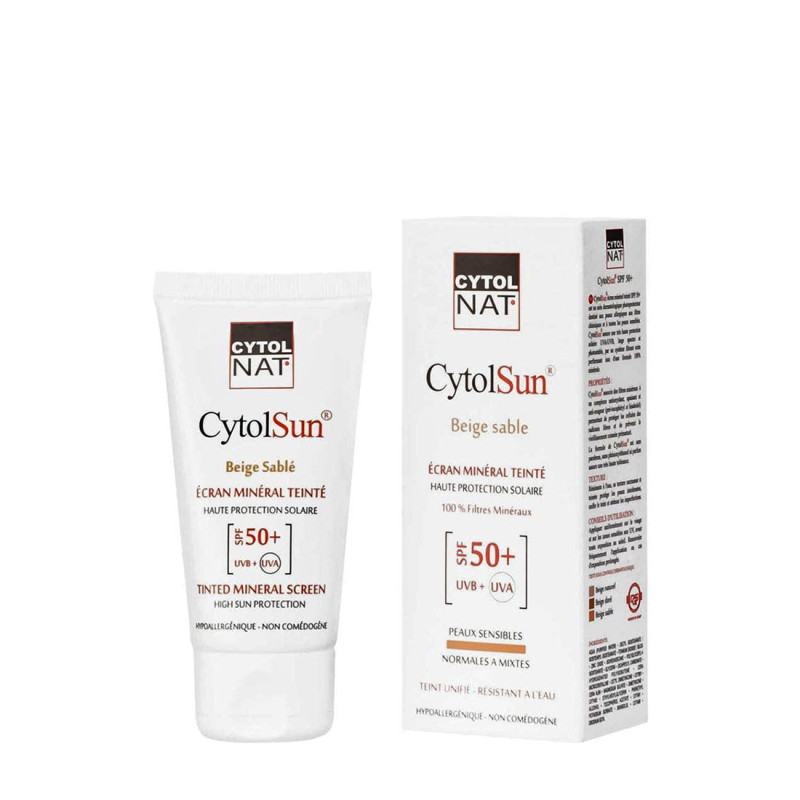 CytolSun écran minéral teinté SPF 50+ est un soin dermatologique photoprotecteur spécialement formulé pour les peaux sensibles et intolérantes aux filtres solaires chimiques.CytolSun associe des filtres 100% minéraux (Oxyde de zinc et dioxyde de titane) à un complexe antioxydant, apaisant et anti-rougeur (pré-tocophéryl et bisabolol) assurant une très haute protection solaire UVA/ UVB large spectre et photostable et permettant de prévenir le vieillissement cutané prématuré
