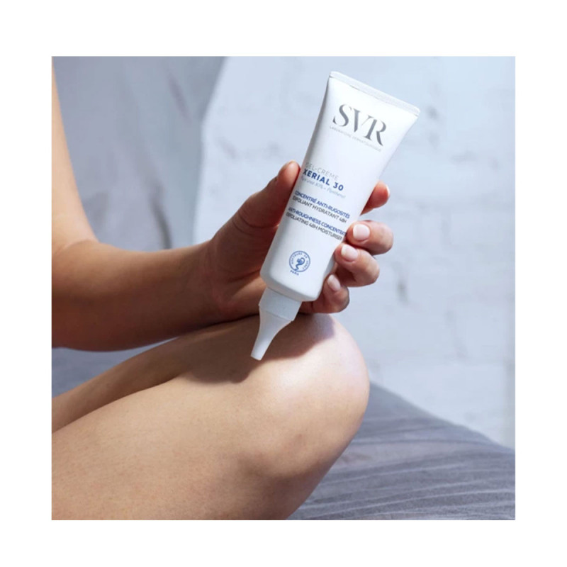 Le gel-crème Xérial 30 du laboratoire dermatologique SVR est formulée pour réduire les rugosités et les poils incarnés.