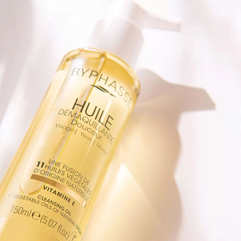 L’ huile démaquillante Douceur Byphasse est une fusion de 11 huiles végétales d’origine naturelle et vegan. Avec sa texture légère et soyeuse, elle démaquille efficacement le visage, les yeux et les lèvres tout en douceur, même les maquillages les plus tenaces ou waterproof, laissant la peau propre et hydratée, sans finition grasse.