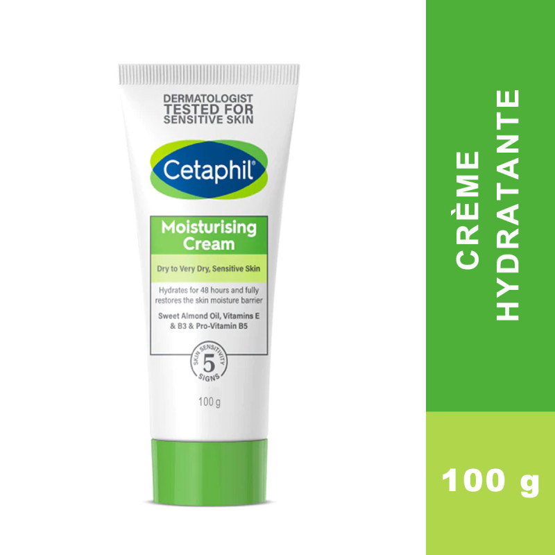 La crème hydratante de Cétaphil est un soin à formule rehaussée d’un mélange de niacinamide (vitamine B3), de panthénol (provitamine B5) et de glycérine hydratante. Cette crème aussi contient de l’huile d’amande douce et de l’huile de tournesol pour hydrater la peau. Elle est destinée pour les peaux sèches, très sèches & sensibles