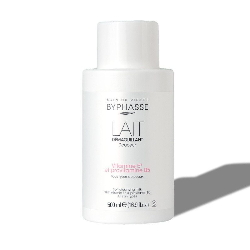Le lait démaquillant douceur de Byphasse est à base de vitamine E et provitamine B5. Il enlève les impuretés (poussière et pollution) pour une peau visiblement plus nette et hydratée.