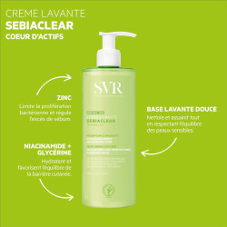 SVR Sebiaclear crème lavante est une crème lavante hydratante apaisante anti-dessèchement anti-imperfections.