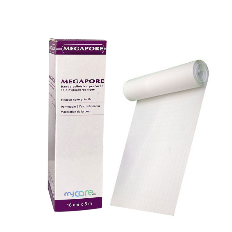 La sécurité des grands soins, la douceur en plus. Le rouleau MEGAPORE (18cm x 5m) est une bande adhésive de fixation extra-large. Sa structure perforée laisse la peau respirer tandis que son adhésif hypoallergénique respecte les épidermes les plus fragiles. C’est la solution de référence pour le maintien intégral des compresses sur de grandes surfaces (ventre, dos, cuisses).