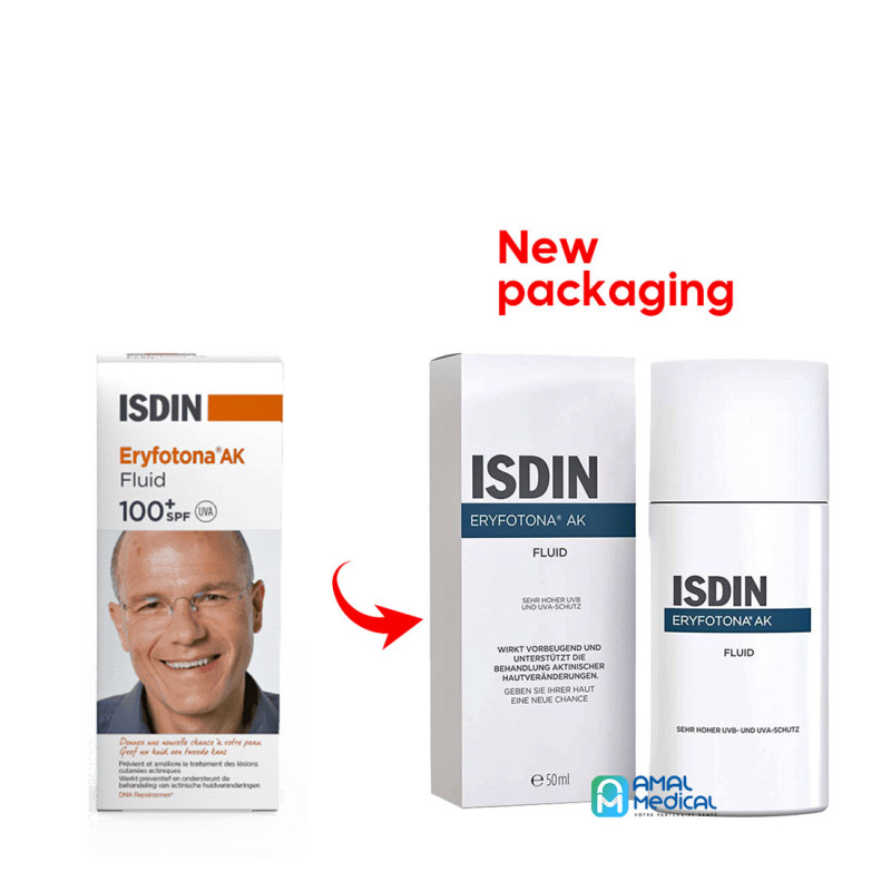 Isdin Eryfotona AK un écran solaire très haute protection permet d'empêcher et réparer les dommages actiniques. Donne à votre peau une nouvelle chance Prévention et traitement protecteur adjuvant de la kératose actinique (AK) et d'autres formes de cancer de la peau non mélanome (NMSC).