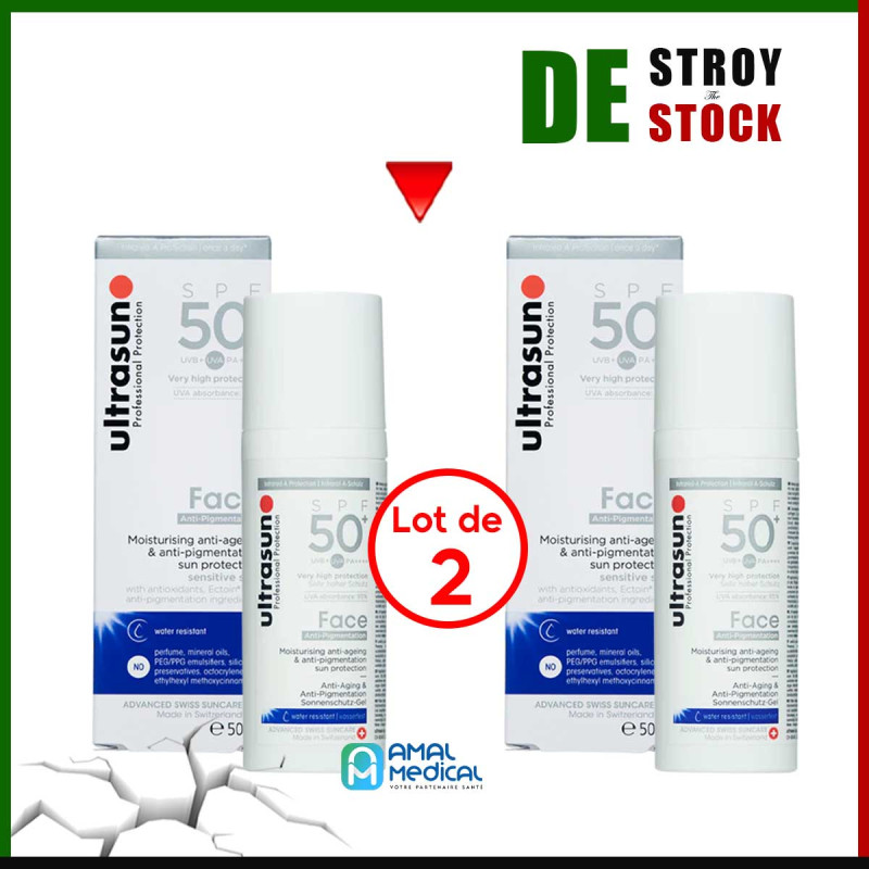 Lot de 2 écran solaire anti-age anti-pigmentation spf50+ (50ml)