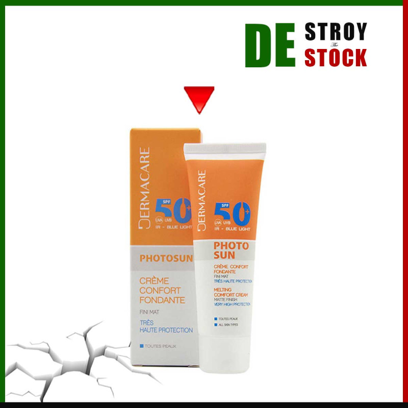Crème confort matifiante et invisible de Dermacare à très haute protection protège la peau des UVA et des UVB , des infrarouges et de la lumière bleue naturelle et