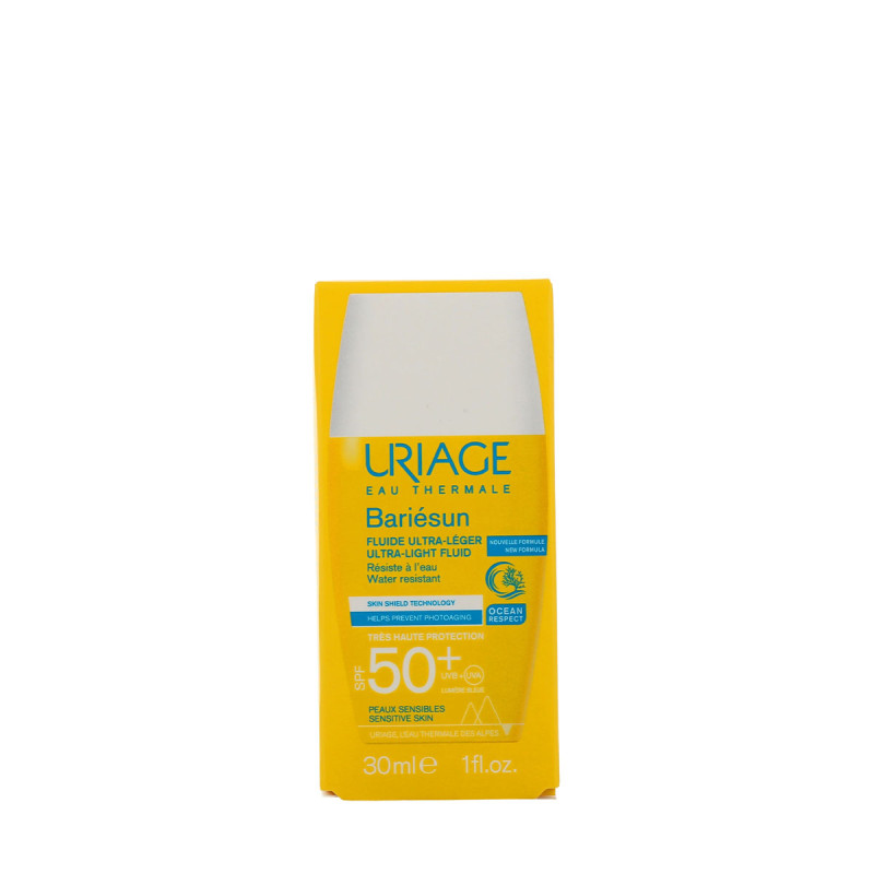 Complexe filtrant anti UVA-UVB-lumière bleue — [Brevet Bariesun] – [Brevet Telomeres Protect] — Eau Thermale d’Uriage — Vitamine E — Aquaspongines