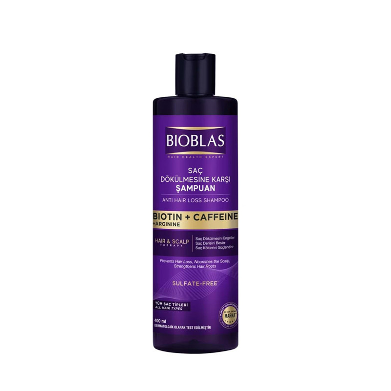 Shampoing anti-chute à la biotine et à la caféine de Bioblas. Sa formule, contenant de la biotine, de la caféine et de l'arginine, nourrit les cheveux de la racine aux pointes. Il contribue à améliorer la qualité des cheveux et favorise leur croissance. Il offre un soin efficace contre la chute des cheveux.