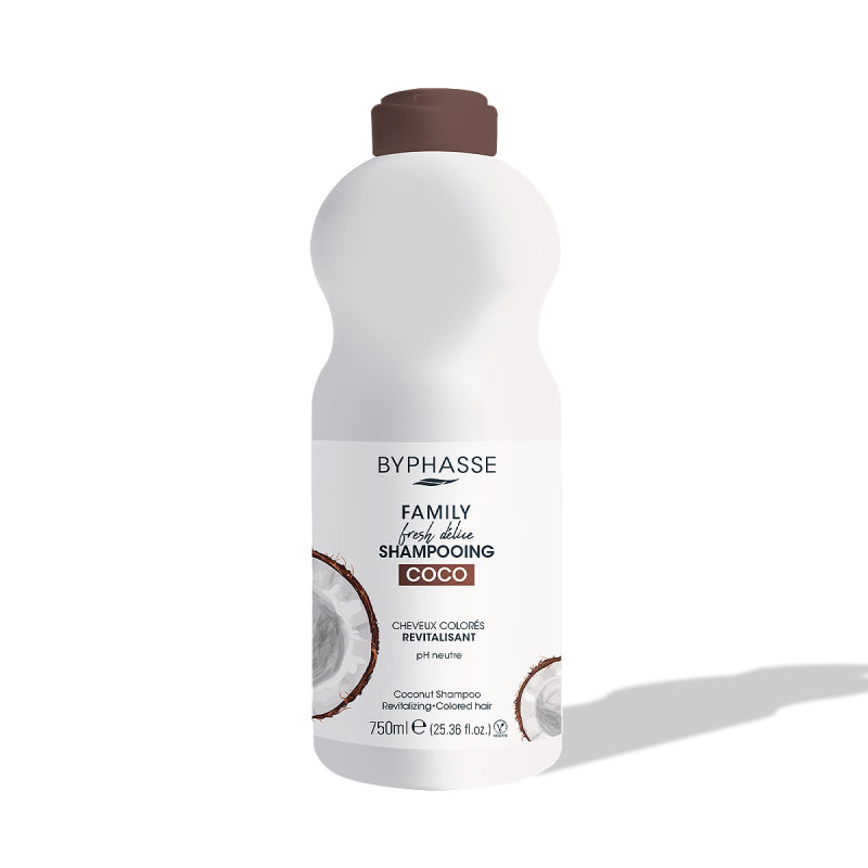 Le shampooing Byphasse Family Fresh Délice, pour cheveux colorés revitalise et protège la coloration. Sa formule à base d' extrait de noix de coco un ingrédient contenant des protéines et des acides gras, lisse, discipline et répare les cheveux.