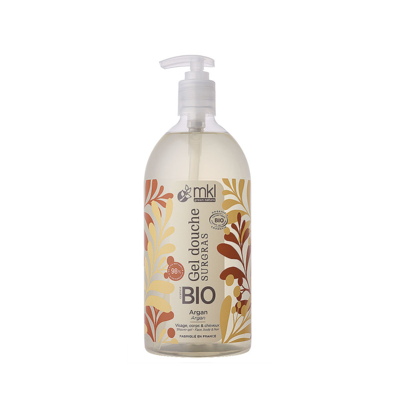 Découvrez le Gel Douche surgras Certifié Bio MKL à l'argan, un nettoyant polyvalent conçu pour simplifier votre routine de soin. Adapté pour le visage, le corps et les cheveux, ce gel est idéal pour toute la famille, offrant douceur et efficacité dans un grand format économique de 1 litre avec pompe.