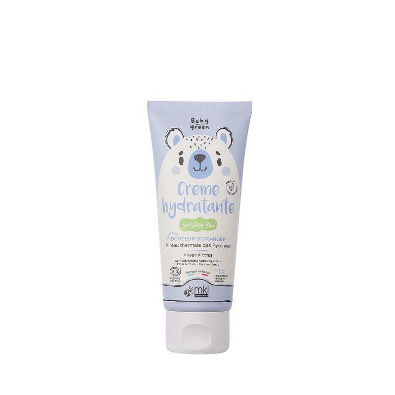 Crème hydratante bio pour bébé, enrichie en eau thermale et huile de coco, qui nourrit, apaise et protège la peau sensible au quotidien. Certifiée bio, cette crème enveloppe la peau de bébé avec douceur, comme un tendre câlin.