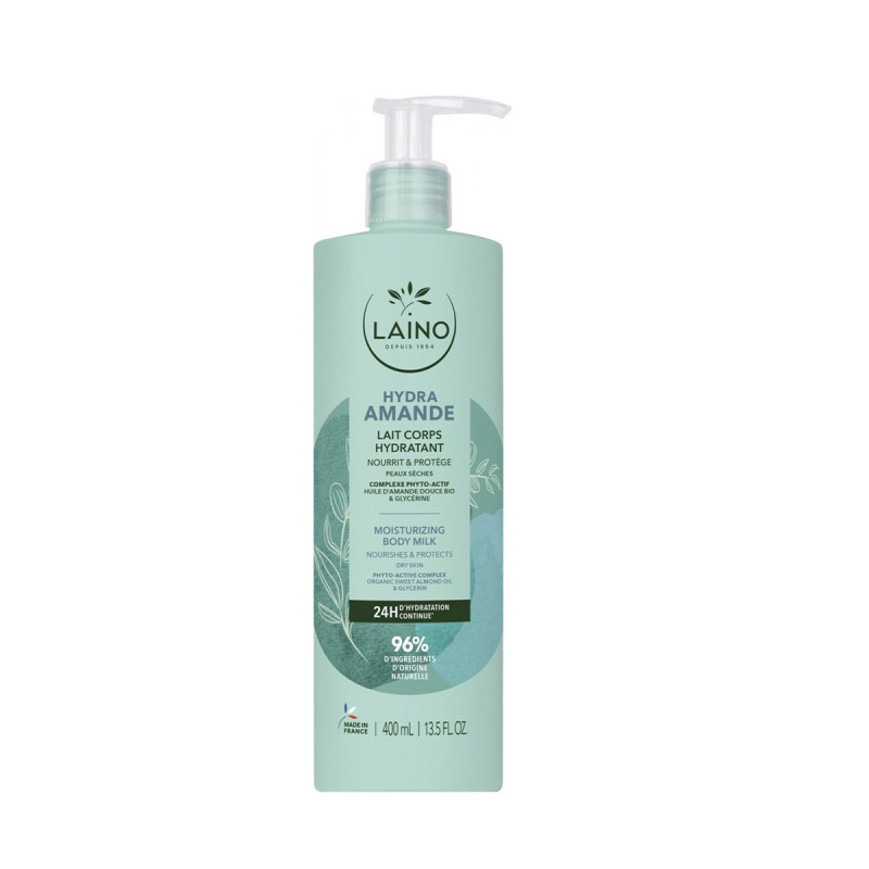 Offrez à votre peau une hydratation légère et continue pendant 24h avec le Lait Corps Hydratant Amande Douce Laino. Sa formule à 96 % d’ingrédients d’origine naturelle, enrichie en huile d’amande douce BIO et en glycérine, nourrit, protège et prévient le dessèchement cutané. Sa texture fraîche et non grasse pénètre rapidement pour laisser la peau douce, souple et délicatement parfumée.