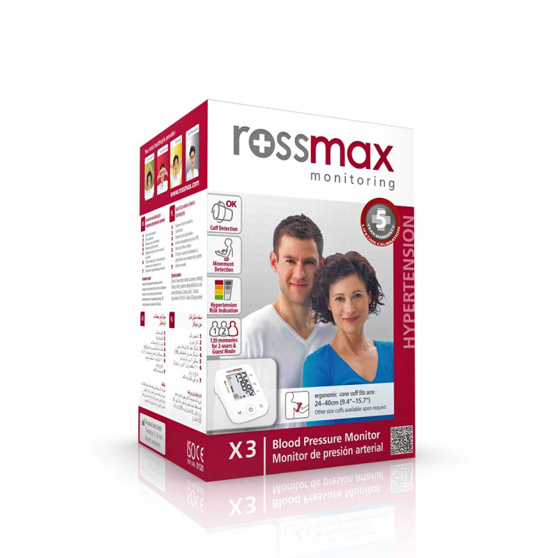 Découvrez la simplicité, l'efficacité et la précision du tensiomètre électronique au bras Rossmax X3.